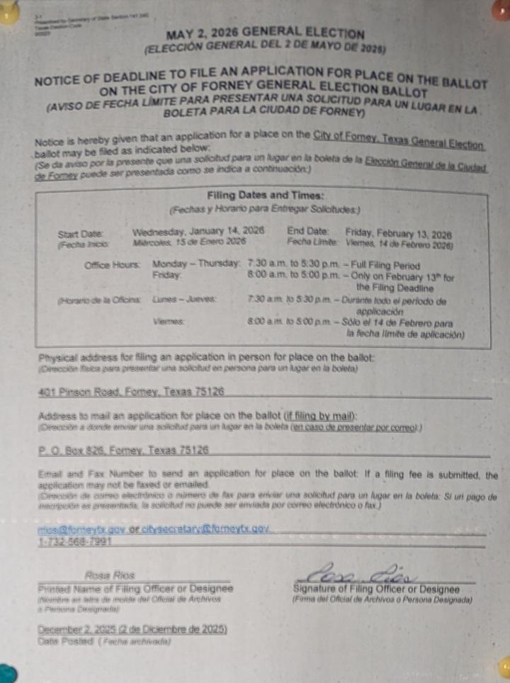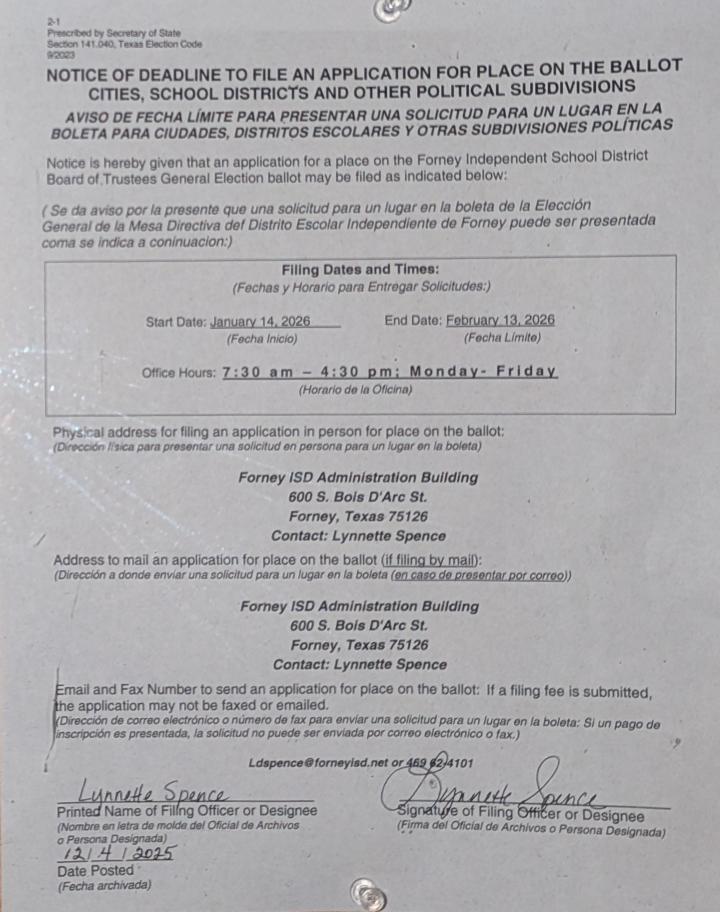 Notice of Deadline to File Application for Place on FISD Ballot
